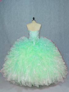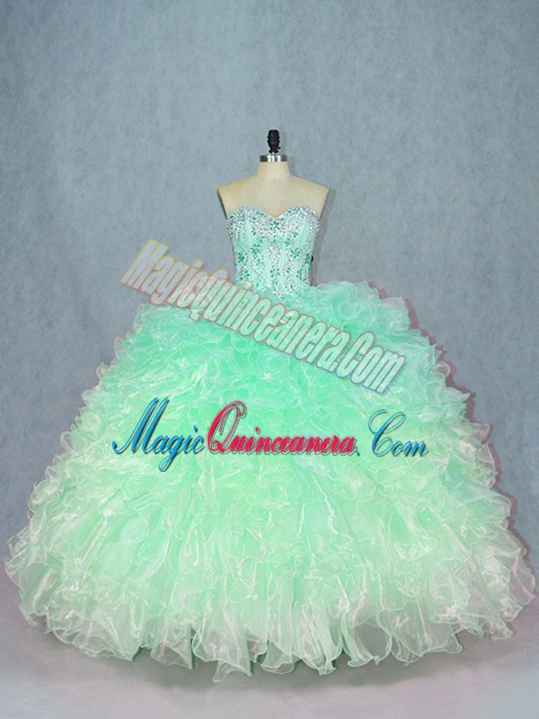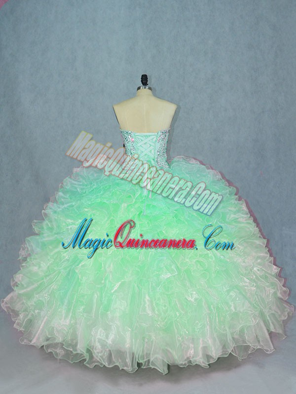 Beading and Ruffles Quinceanera Dresses Green Lace Up Sleeveless Floor Length