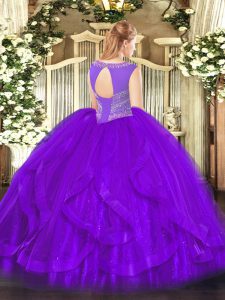Beading and Ruffles Quinceanera Gown Teal Lace Up Sleeveless Floor Length