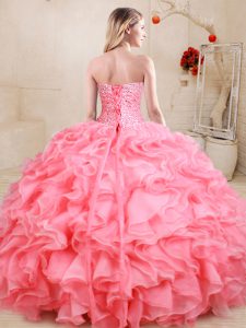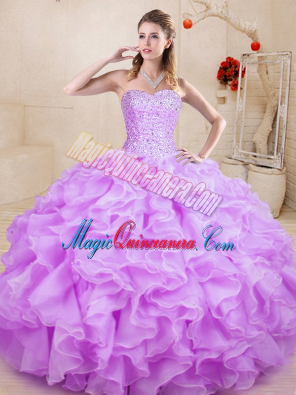 , Beading and Ruffles Sweet 16 Dress Lilac Lace Up Sleeveless Floor Length