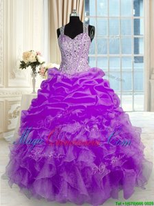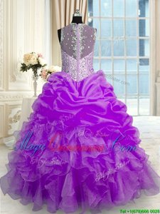 Beading and Ruffles Sweet 16 Dresses Lilac Zipper Sleeveless Floor Length