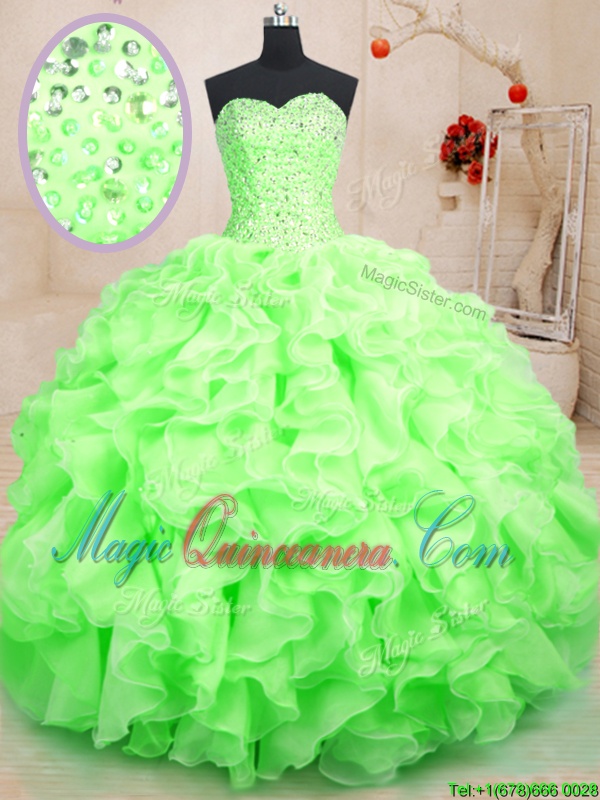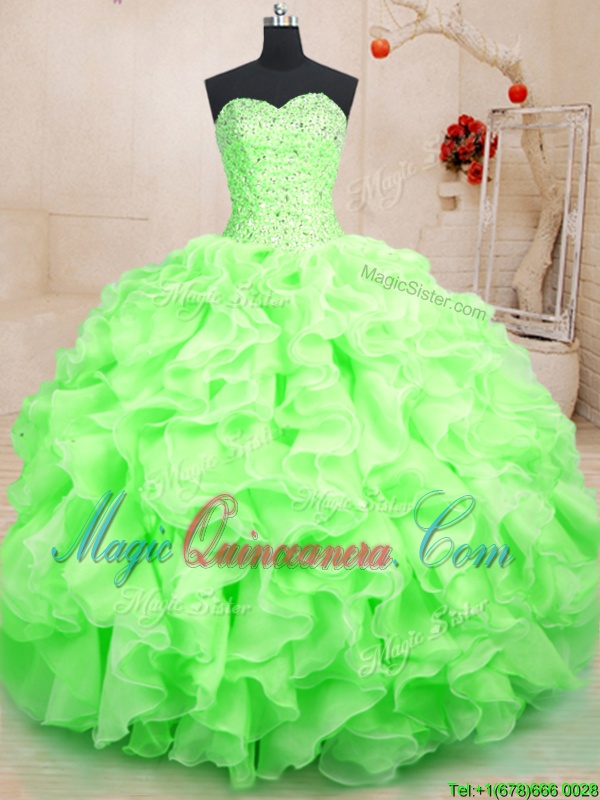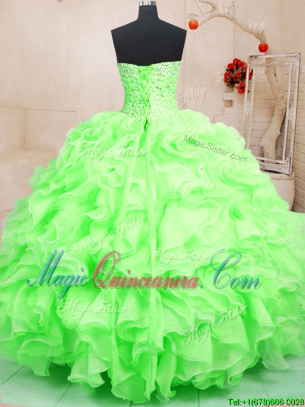Beading and Ruffles Vestidos de Quinceanera Lace Up Sleeveless Floor Length