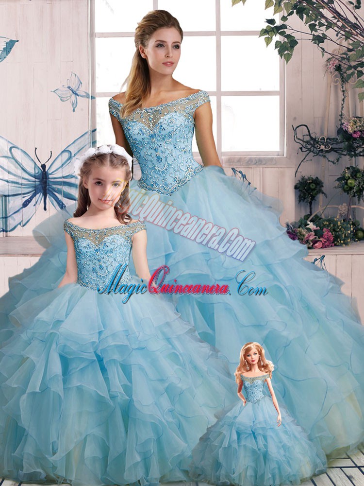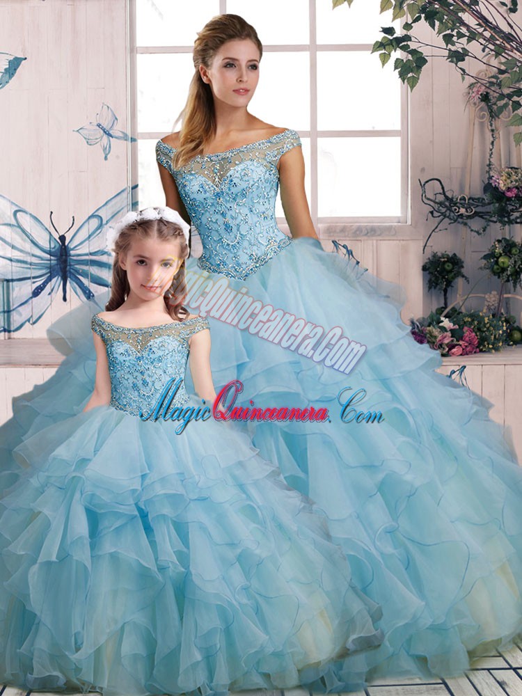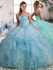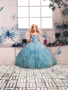 Beading and Ruffles Vestidos de Quinceanera Light Blue Lace Up Sleeveless Floor Length