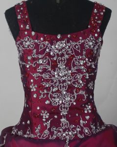 Beading Appliques and Straps Quinceanera Dresses in Wine Red