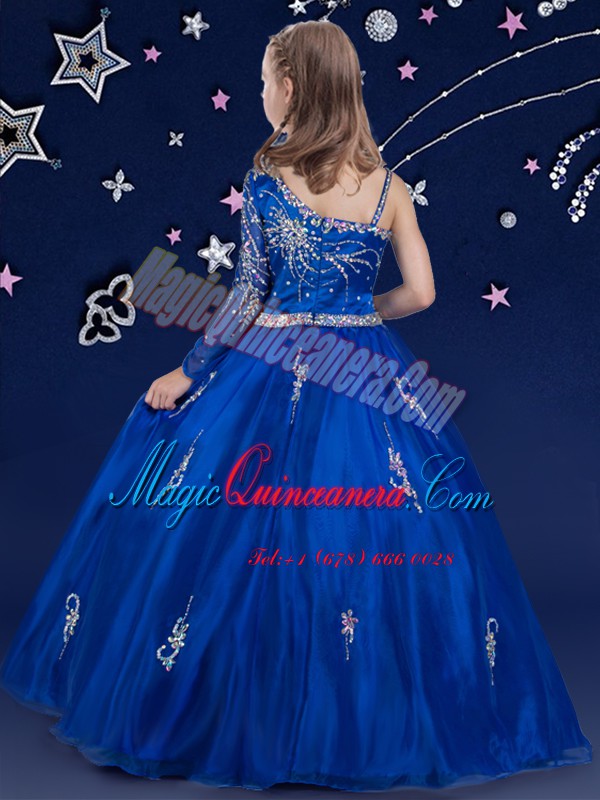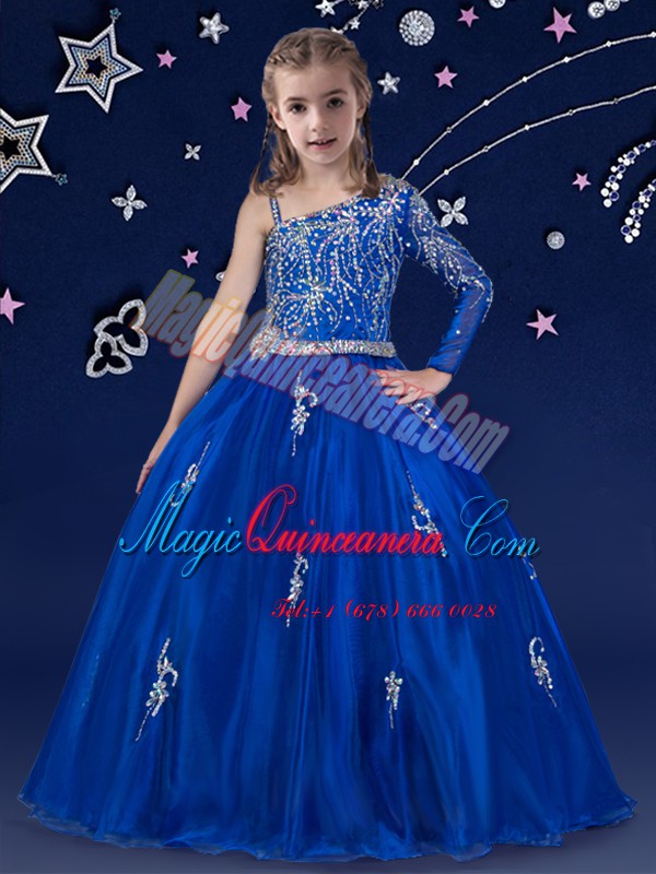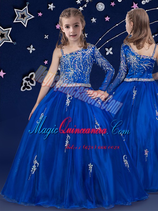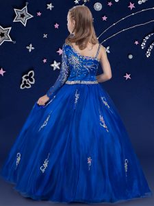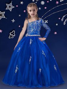 Beading Pageant Dresses Royal Blue Zipper Sleeveless Floor Length