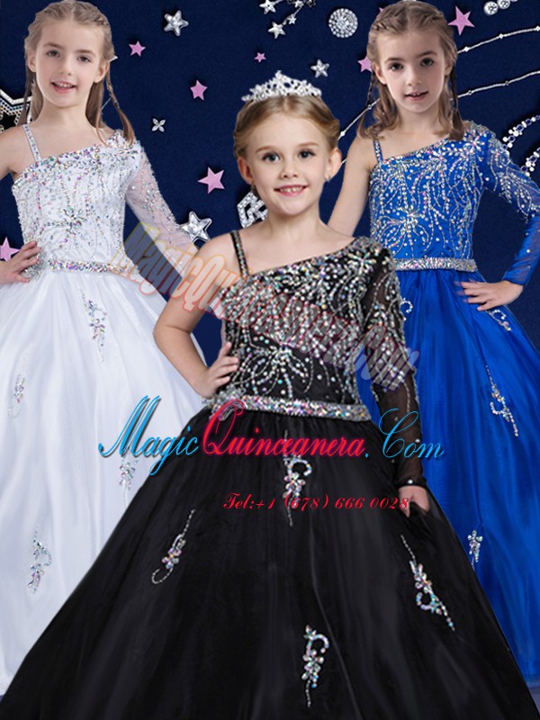 , Beading Pageant Dresses Royal Blue Zipper Sleeveless Floor Length