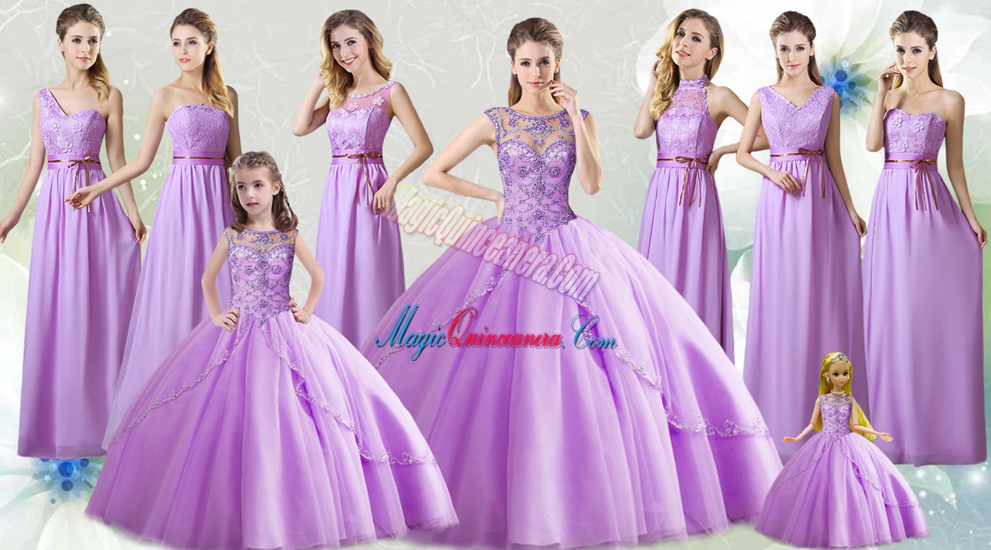 Beading Quinceanera Dress Lilac Lace Up Sleeveless Floor Length