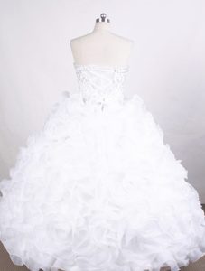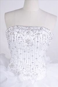 strapless ball gown real sample quinceanera dress, Beading Ruffled Layers White Organza Dresses for Quinceaneras