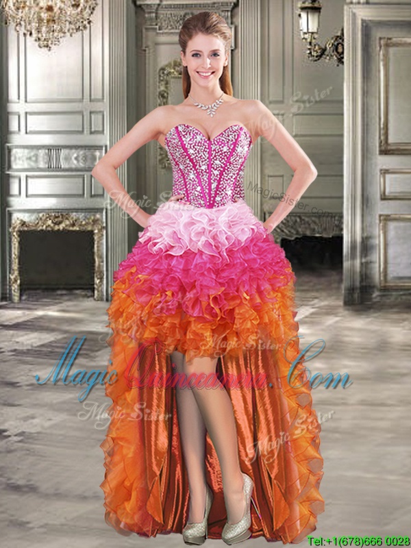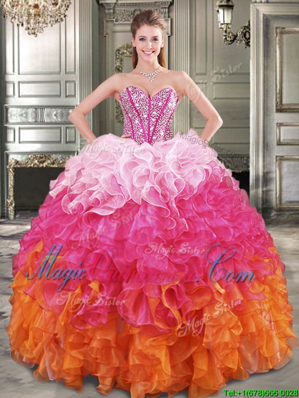 Beauteous Four Piece Multi-color Sleeveless Beading Floor Length Quinceanera Gown with Jewelry