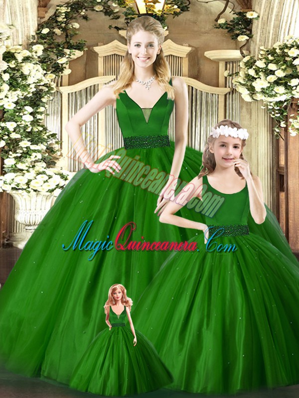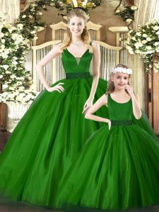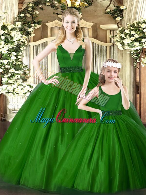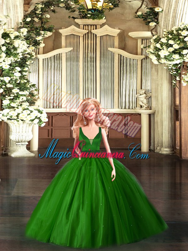 Beauteous Green Sleeveless Embroidery Floor Length Sweet 16 Dress