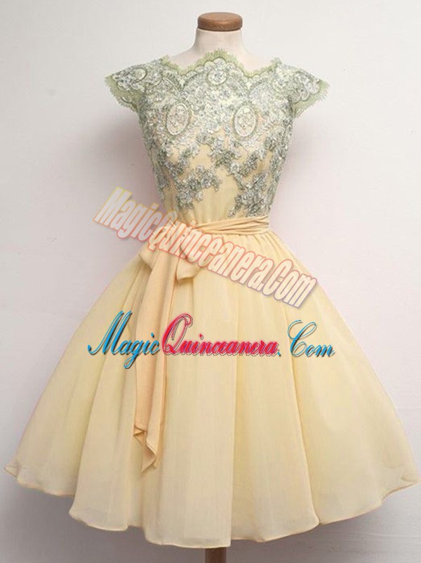 Beauteous Scalloped Cap Sleeves Chiffon Quinceanera Court of Honor Dress Lace and Belt Lace Up