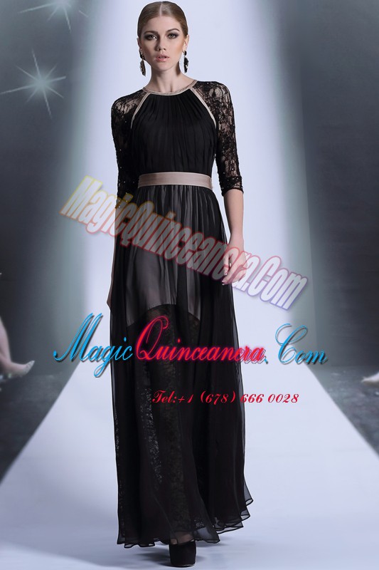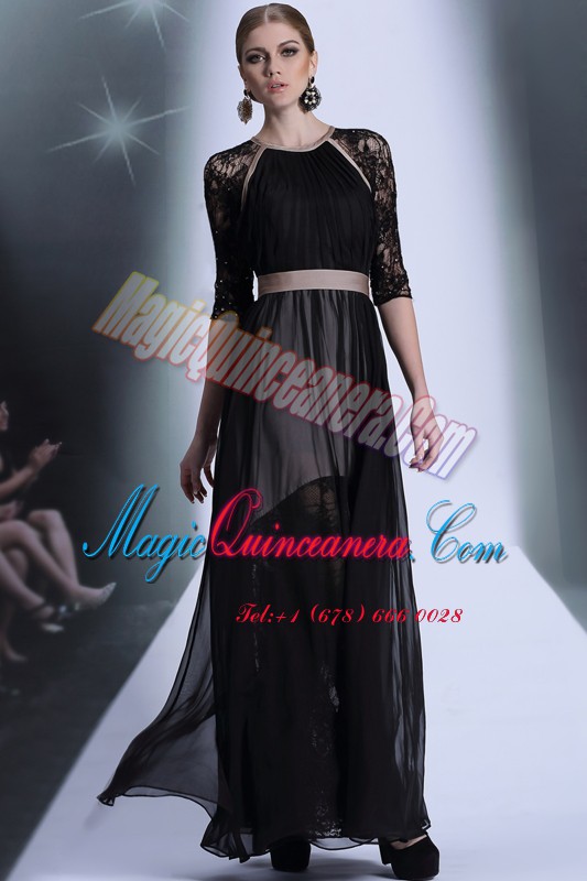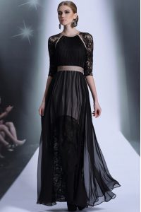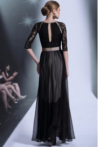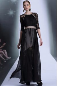 Beauteous Scoop Half Sleeves Zipper Floor Length Lace Prom Dresses