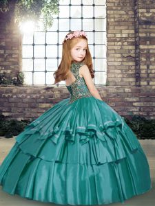 , Beauteous Taffeta Sleeveless Floor Length Pageant Dresses and Beading