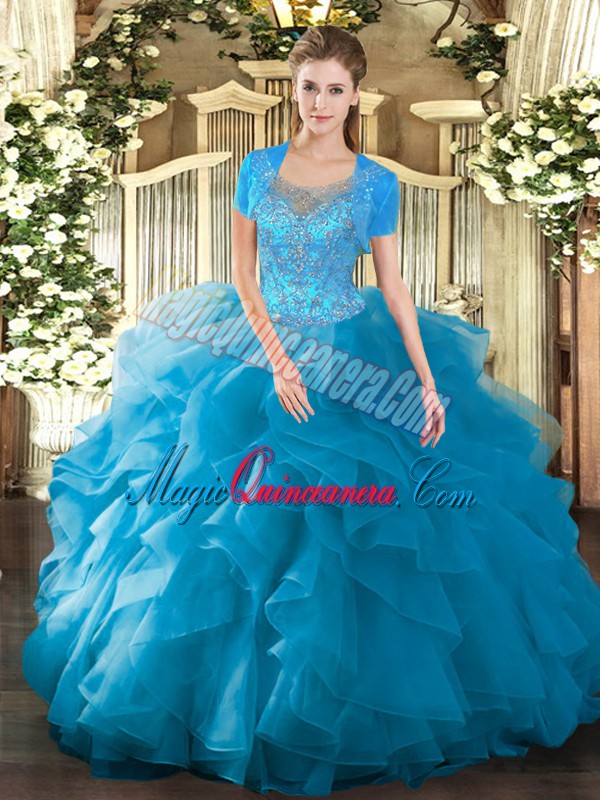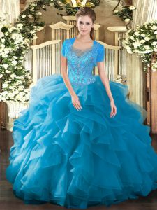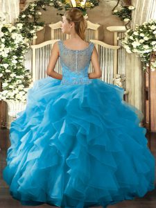 Beauteous Tulle Sleeveless Floor Length Quinceanera Dress and Beading and Ruffled Layers