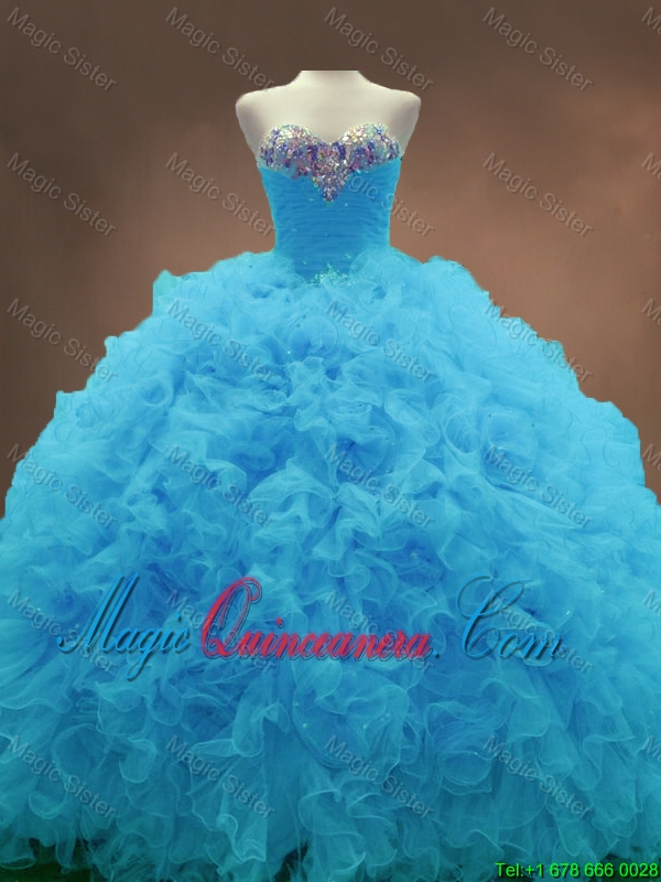 Beautiful Aqua Blue Ball Gown Quinceanera Gowns with Sweetheart