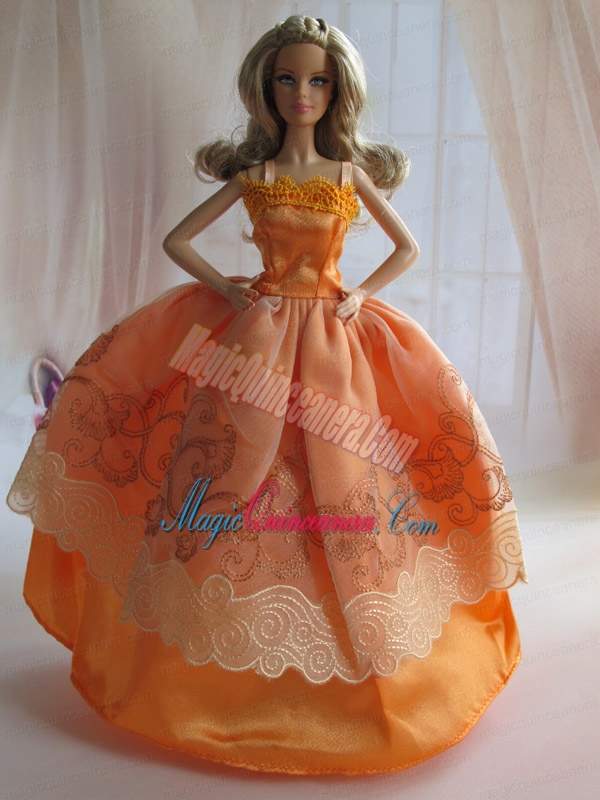 Beautiful Ball Gown Yellow Barbie Doll Dress