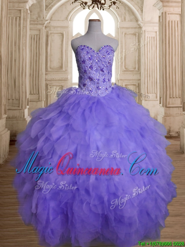 Beautiful Beaded and Ruffled Big Puffy Quinceanera Dress in Lavender
