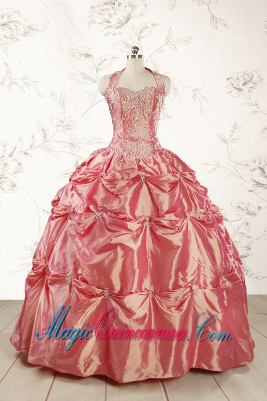 Beautiful Beading and Appliques Watermelon Red Sweet 16 Dresses