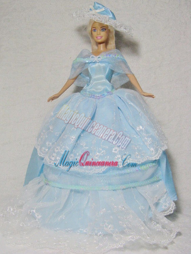 Beautiful Blue Gown With Embroidery Dress For Noble Barbie Doll
