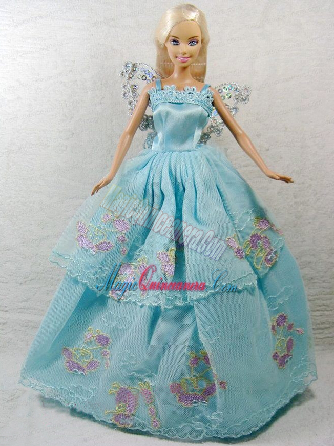 , Beautiful Blue Princess Dress With Appliques Gown For Barbie Doll