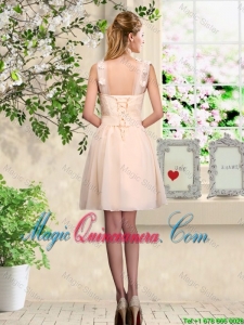 Beautiful Champagne Straps Dama Dresses with Bowknot