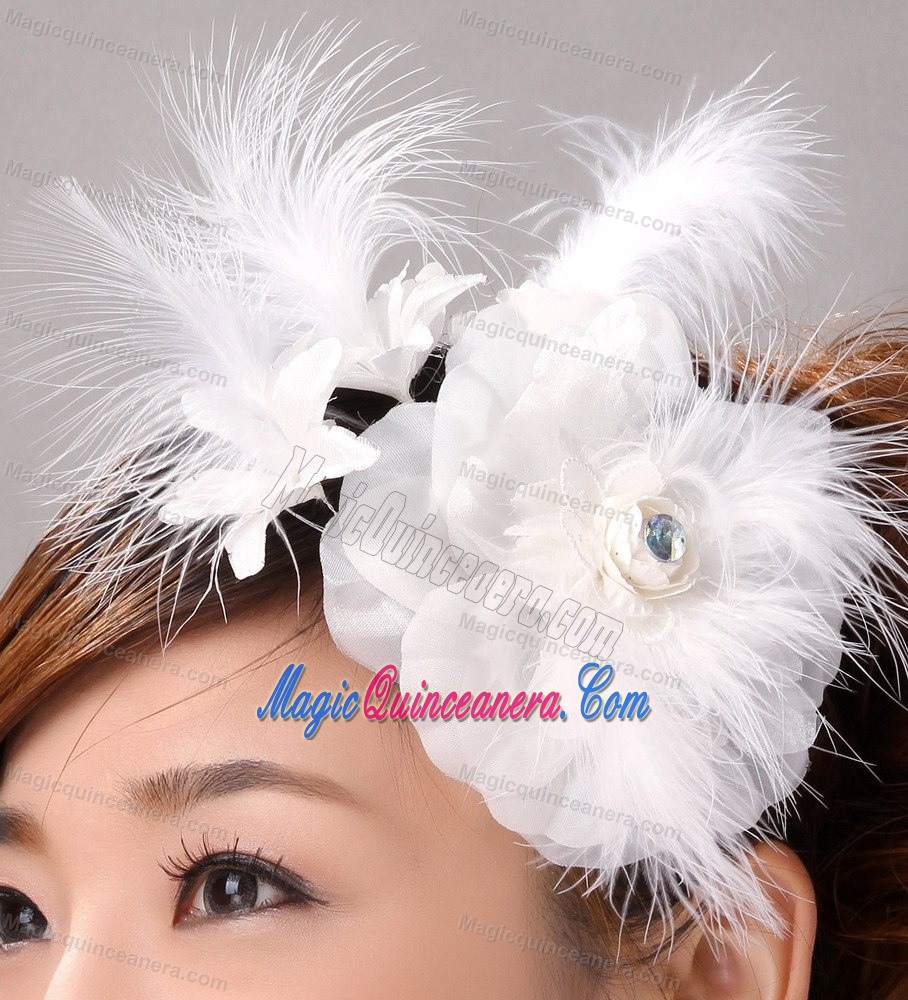 , Beautiful Feather Flower Hairpin Wedding and Outdoor Organza Fascinators