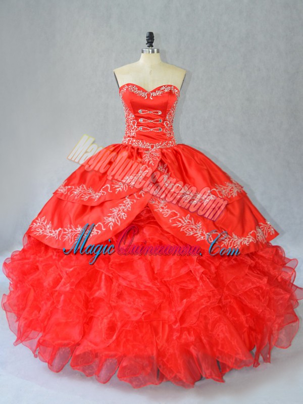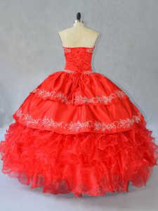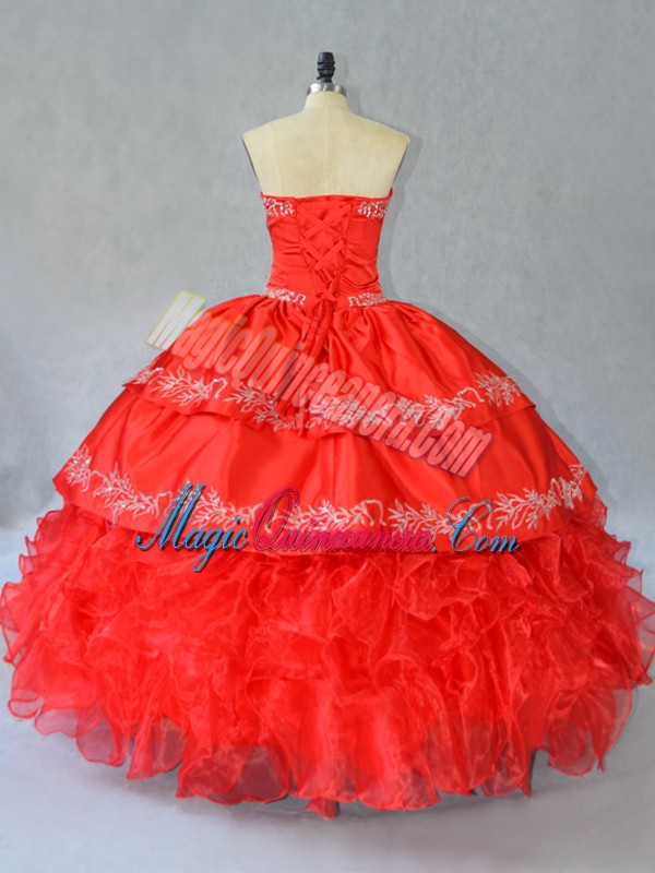 Beautiful Floor Length Ball Gowns Sleeveless Red Quinceanera Dresses Side Zipper