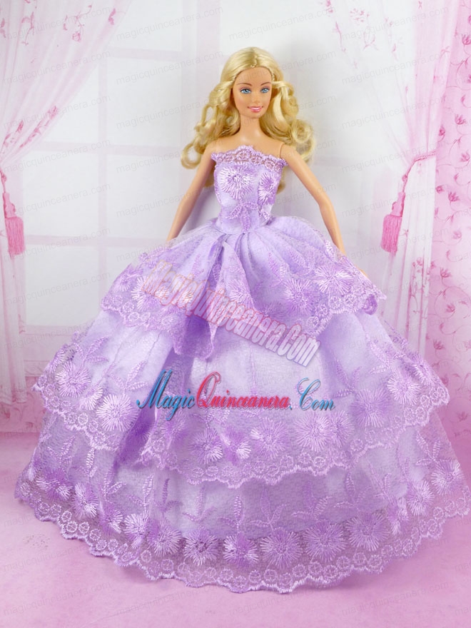 Beautiful Lilac Gown With Lace Dress For Noble Barbie