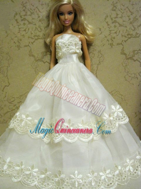 Beautiful Organza Embroidery White Barbie Doll Dress