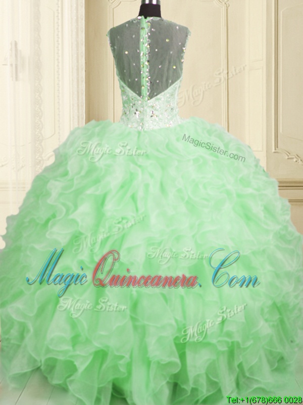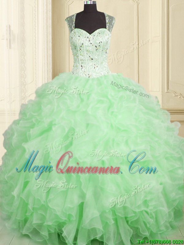 Beautiful Organza Sleeveless Floor Length Quinceanera Dress and Beading and Ruffles