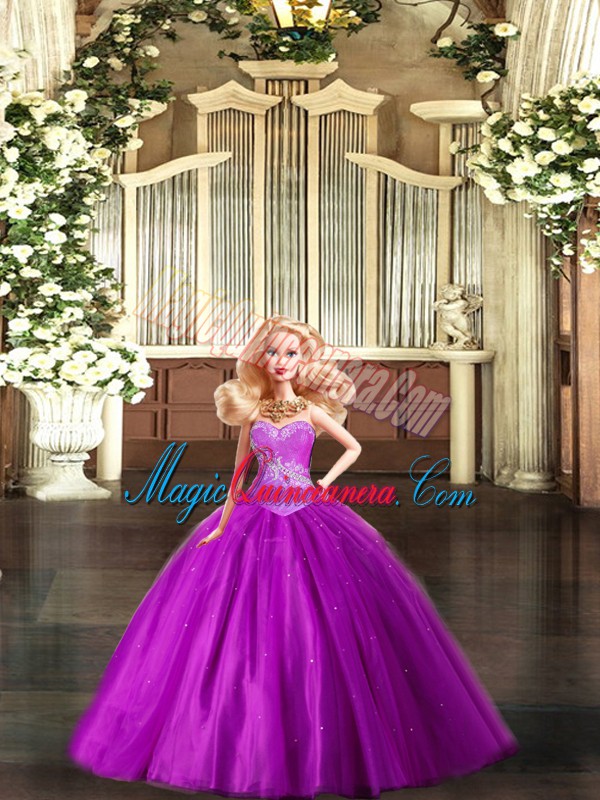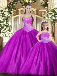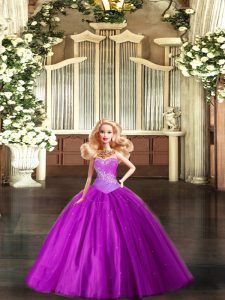 Beautiful Red Tulle Lace Up Ball Gown Prom Dress Sleeveless Floor Length Beading and Ruching