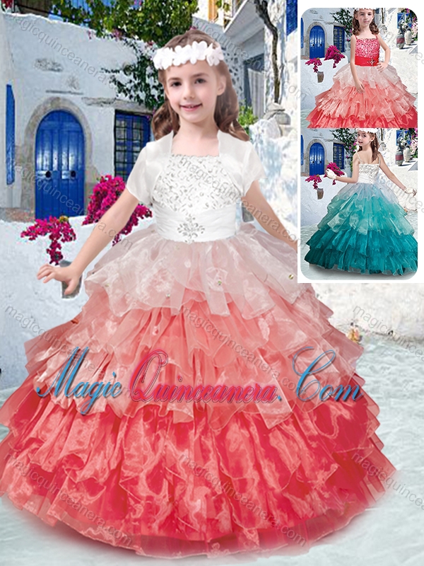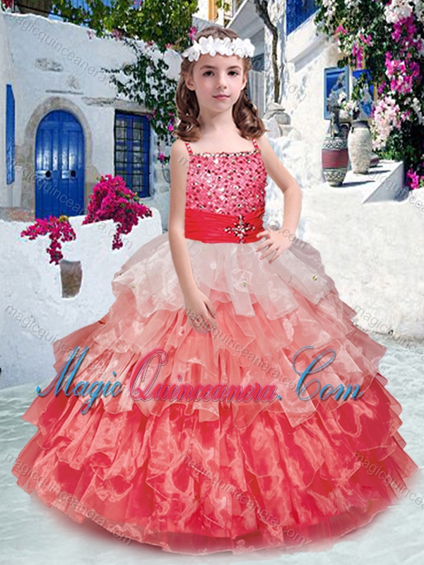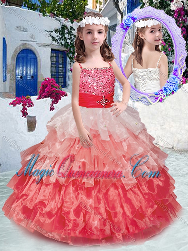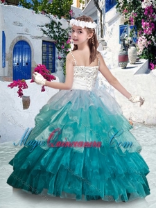 Beautiful Spaghetti Straps Little Girl Pageant Dresses with Beading and Ruffled Layers