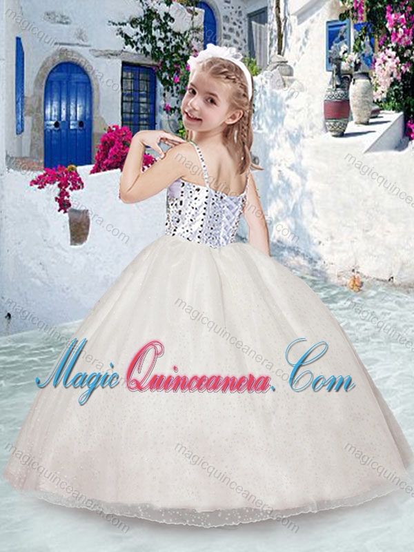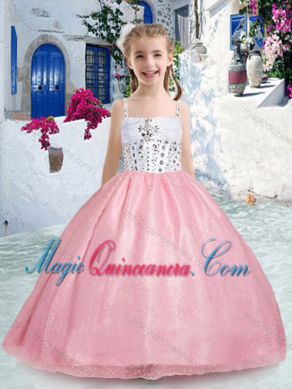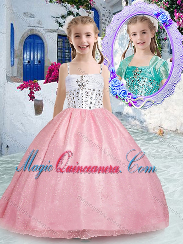 Beautiful Spaghetti Straps Pink Little Girl Pageant Dresses with Beadin