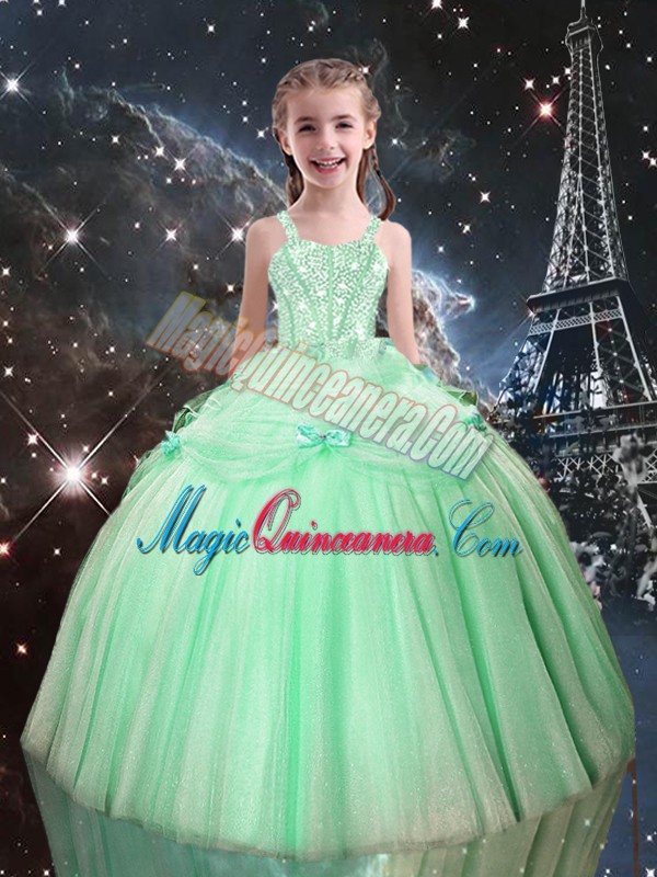 Beautiful Tulle Sleeveless Floor Length Sweet 16 Dresses and Beading