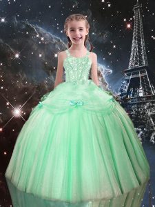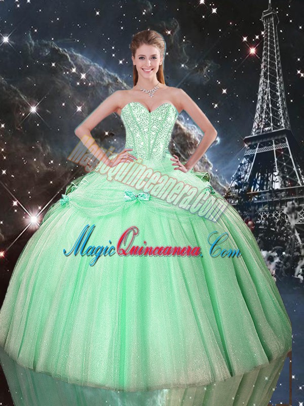, Beautiful Tulle Sleeveless Floor Length Sweet 16 Dresses and Beading