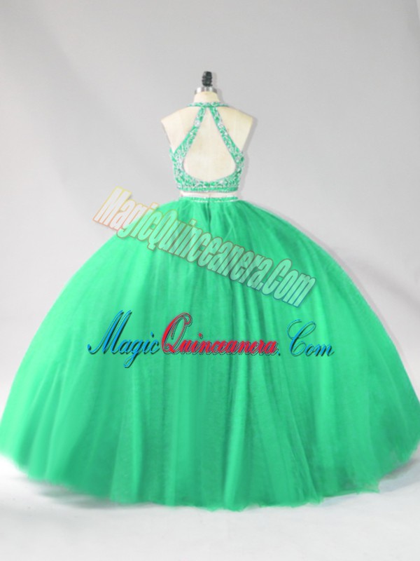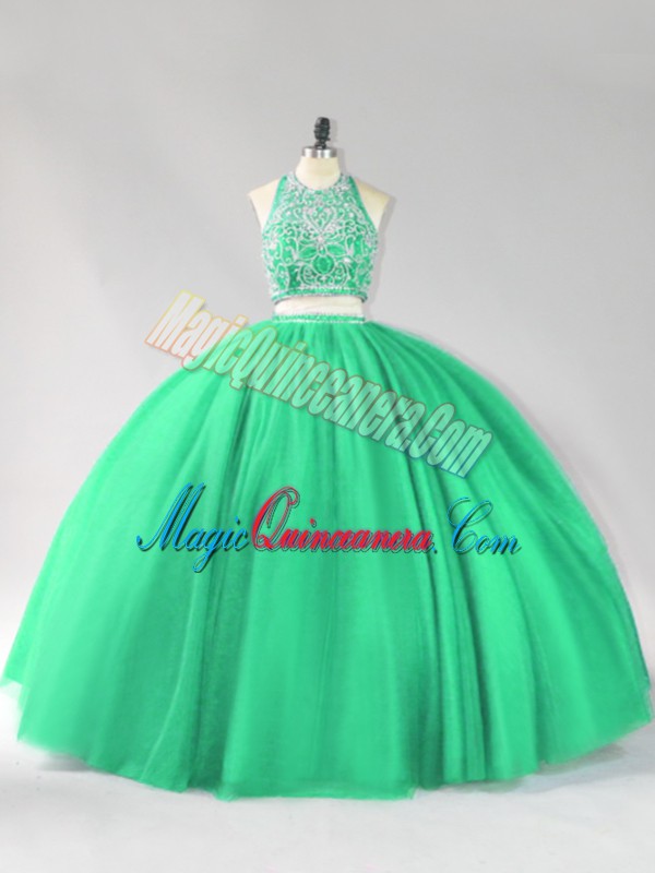, Beautiful Turquoise Halter Top Backless Beading Quinceanera Dress Sleeveless