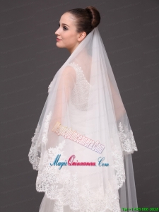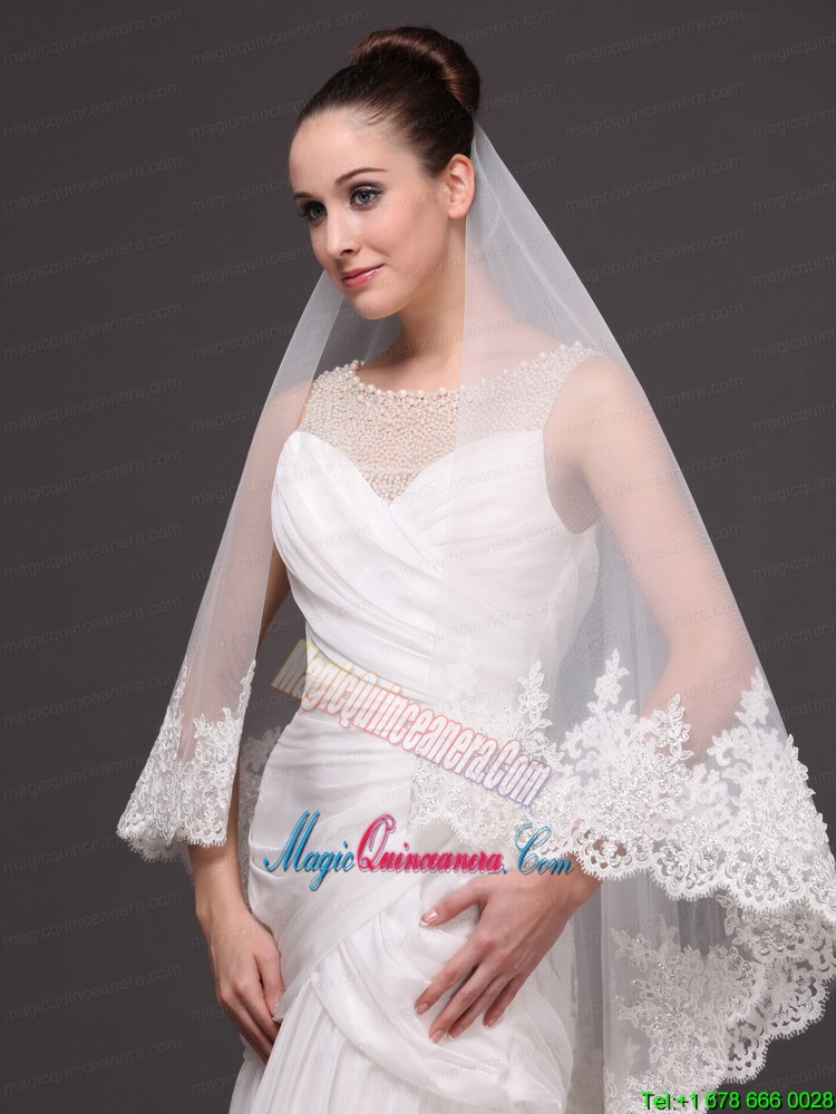 Beautiful Two-tier Cathedral Wedding Veil With Lace Applique Edge