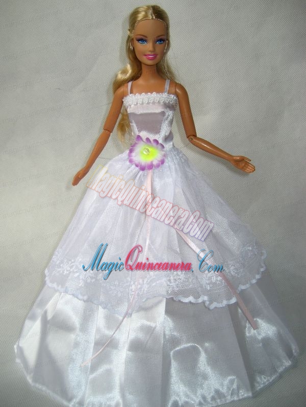 Beautiful White Gown With Flower Made To Fit the Barbie Doll