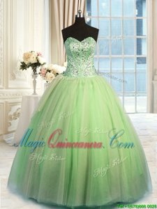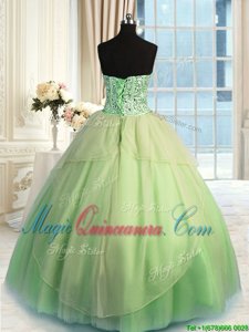 Beautiful Yellow Green Sleeveless Organza Lace Up 15 Quinceanera Dress for Military Ball and Sweet 16 and Quinceanera