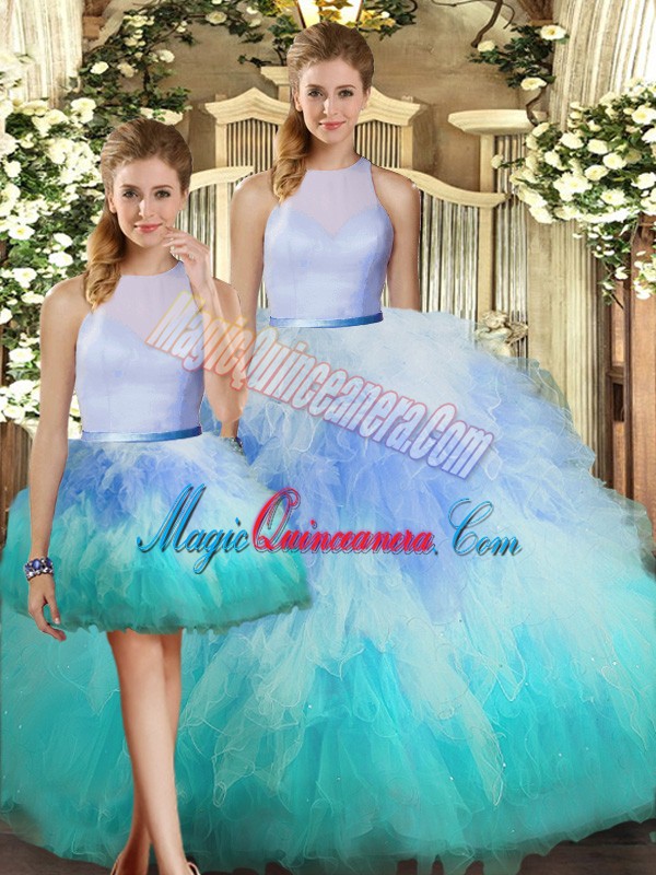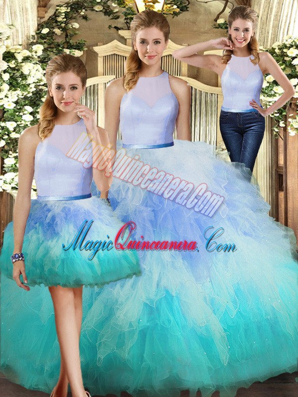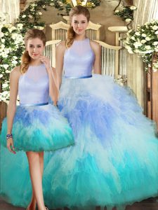 , Best High-neck Sleeveless Backless Quinceanera Gowns Multi-color Tulle