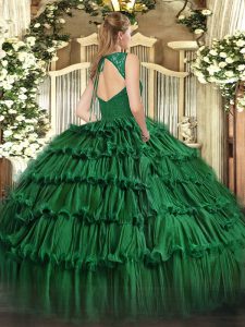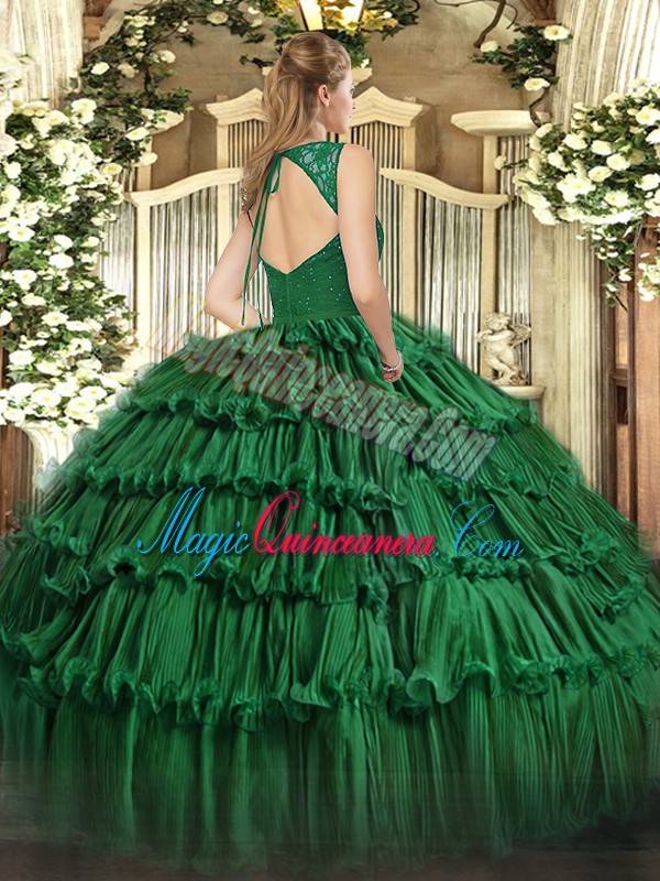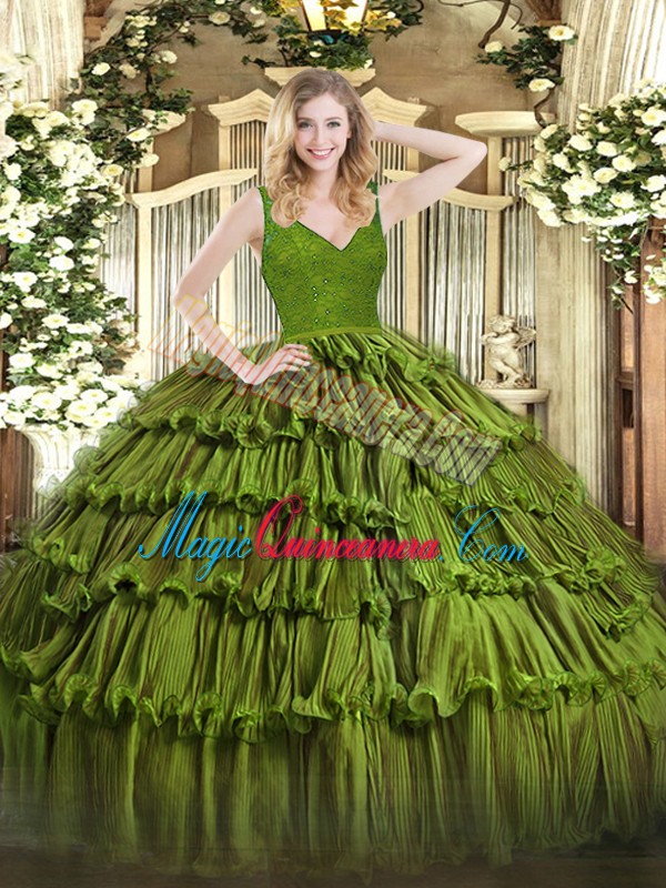 Best Olive Green Zipper Vestidos de Quinceanera Beading and Ruffled Layers Sleeveless Floor Length