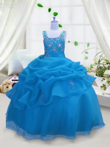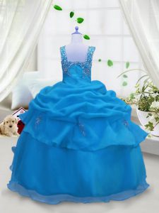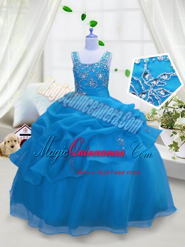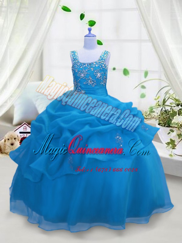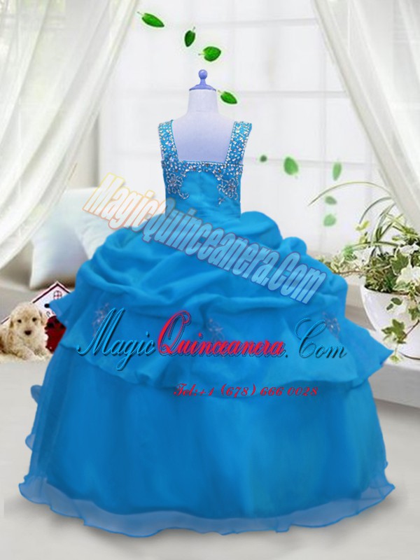 Best Pick Ups Floor Length Ball Gowns Sleeveless Aqua Blue Girls Pageant Dresses Lace Up