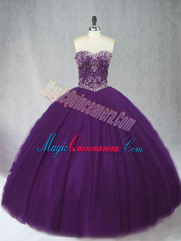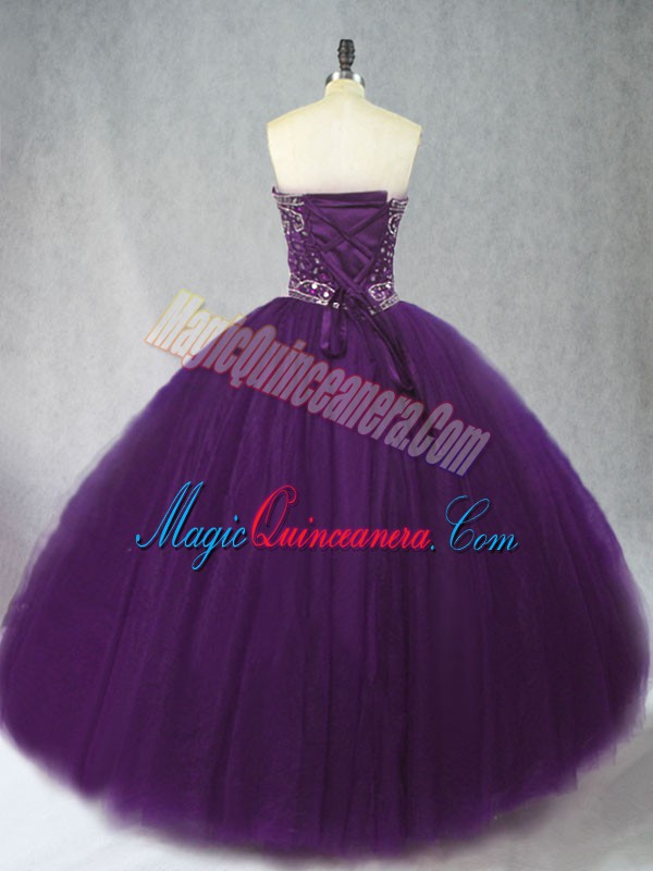 Best Purple Sleeveless Beading Floor Length Sweet 16 Dress