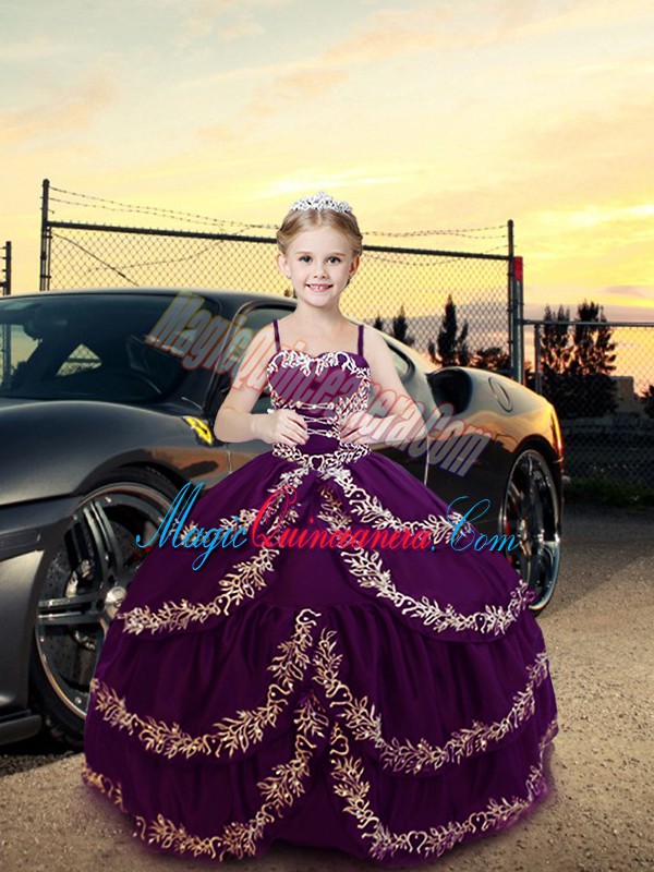 , Best Purple Straps Lace Up Embroidery Custom Made Pageant Dress Sleeveless