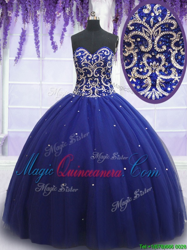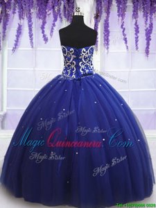 Best Royal Blue Ball Gowns Sweetheart Sleeveless Tulle Floor Length Lace Up Beading 15 Quinceanera Dress