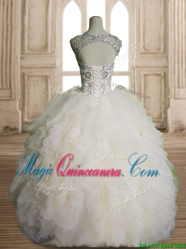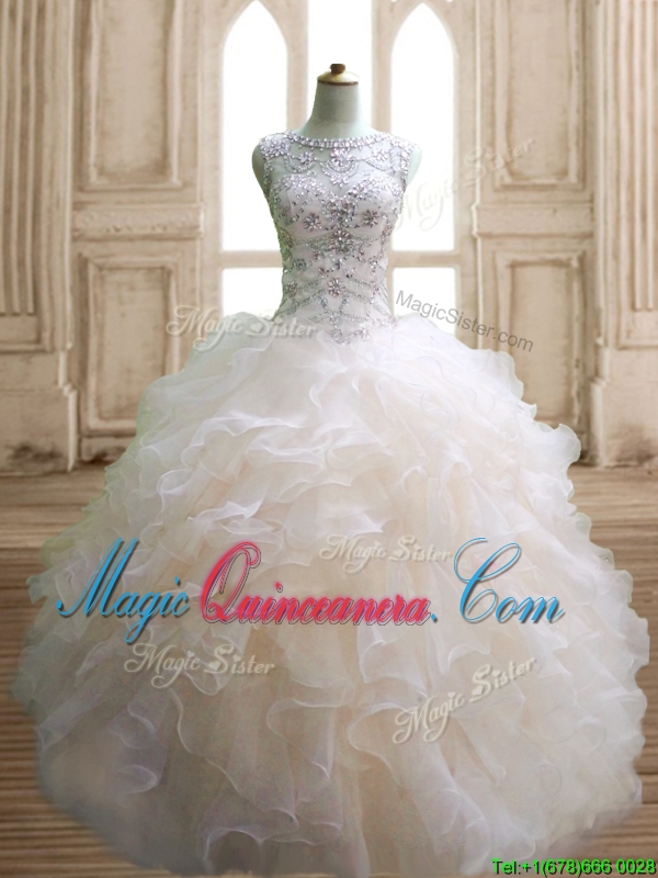 Best Scoop Beading and Ruffles Sweet 16 Dress in Champagne