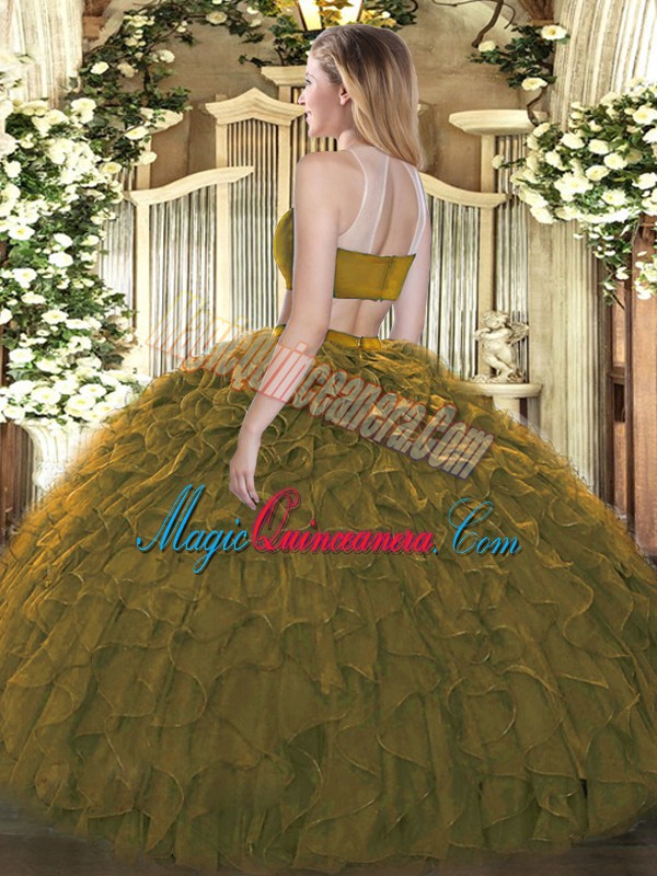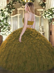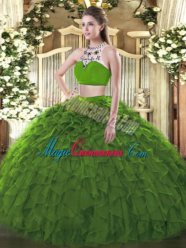 Best Selling Floor Length Dark Green 15 Quinceanera Dress Tulle Sleeveless Beading and Ruffles