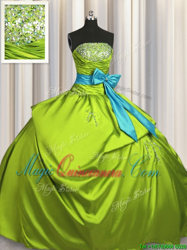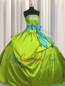 Colorful Beading and Pick Ups and Bowknot Quinceanera Dresses Green Lace Up Sleeveless Floor Length