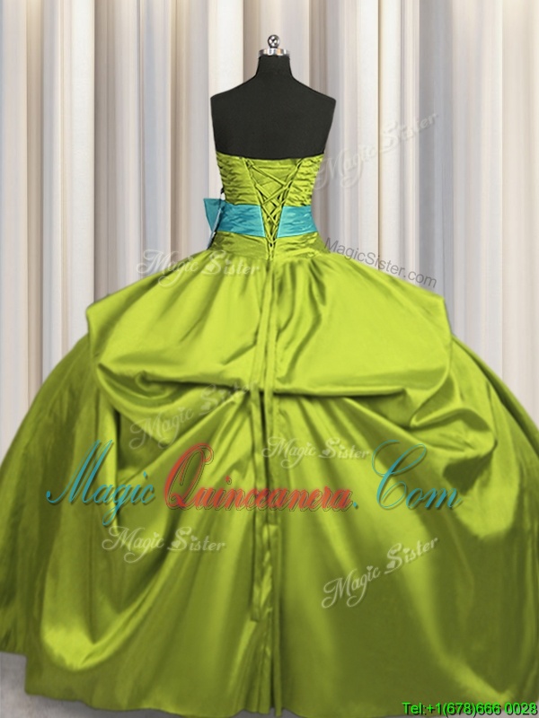 Best Selling Floor Length Lace Up Sweet 16 Quinceanera Dress Yellow Green and In for Military Ball and Sweet 16 and Quinceanera with Beading and Ruching and Bowknot
