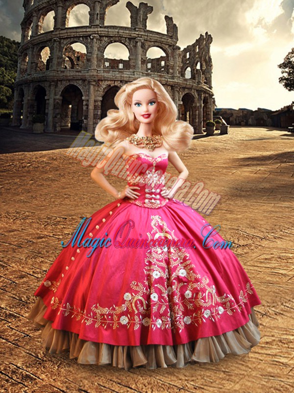 Best Selling Hot Pink Sweetheart Lace Up Beading and Embroidery Sweet 16 Quinceanera Dress Sleeveless