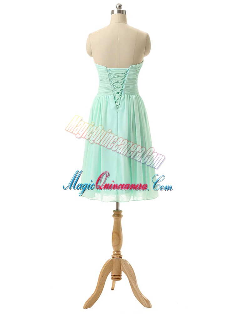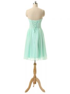 Best Selling Knee Length Empire Sleeveless Apple Green Court Dresses for Sweet 16 Lace Up